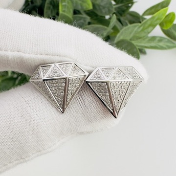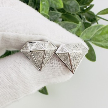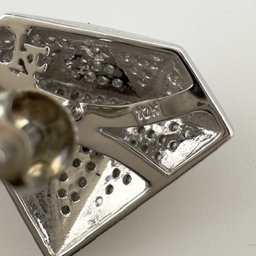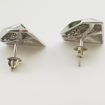 0.55cttw. Huge Diamond Pave Diamond Shaped Chunky 10K White Gold Rapper Hip Hop Style Earrings with screw back posts for safety so they don’t get lost easily.