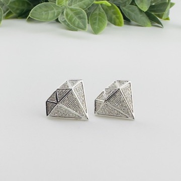 These .55 ct. Total Weight Diamond Pave Diamond Shaped Chunky earrings are set in 10K White Gold. They are a common Rapper Hip Hop Style Earrings with screw back posts for safety so they don't get lost easily. They measure 16.5 x 20mm each and weigh 4.4 grams Total Weight.