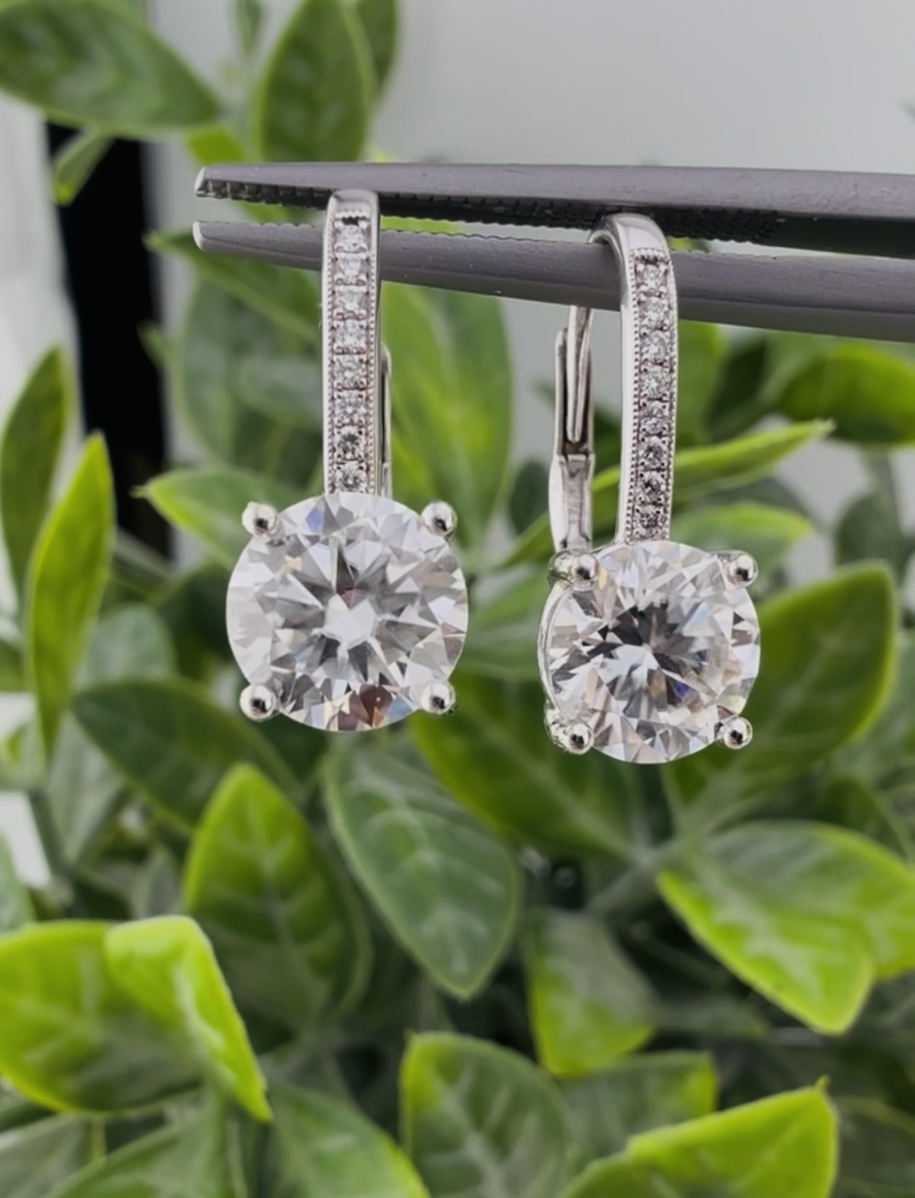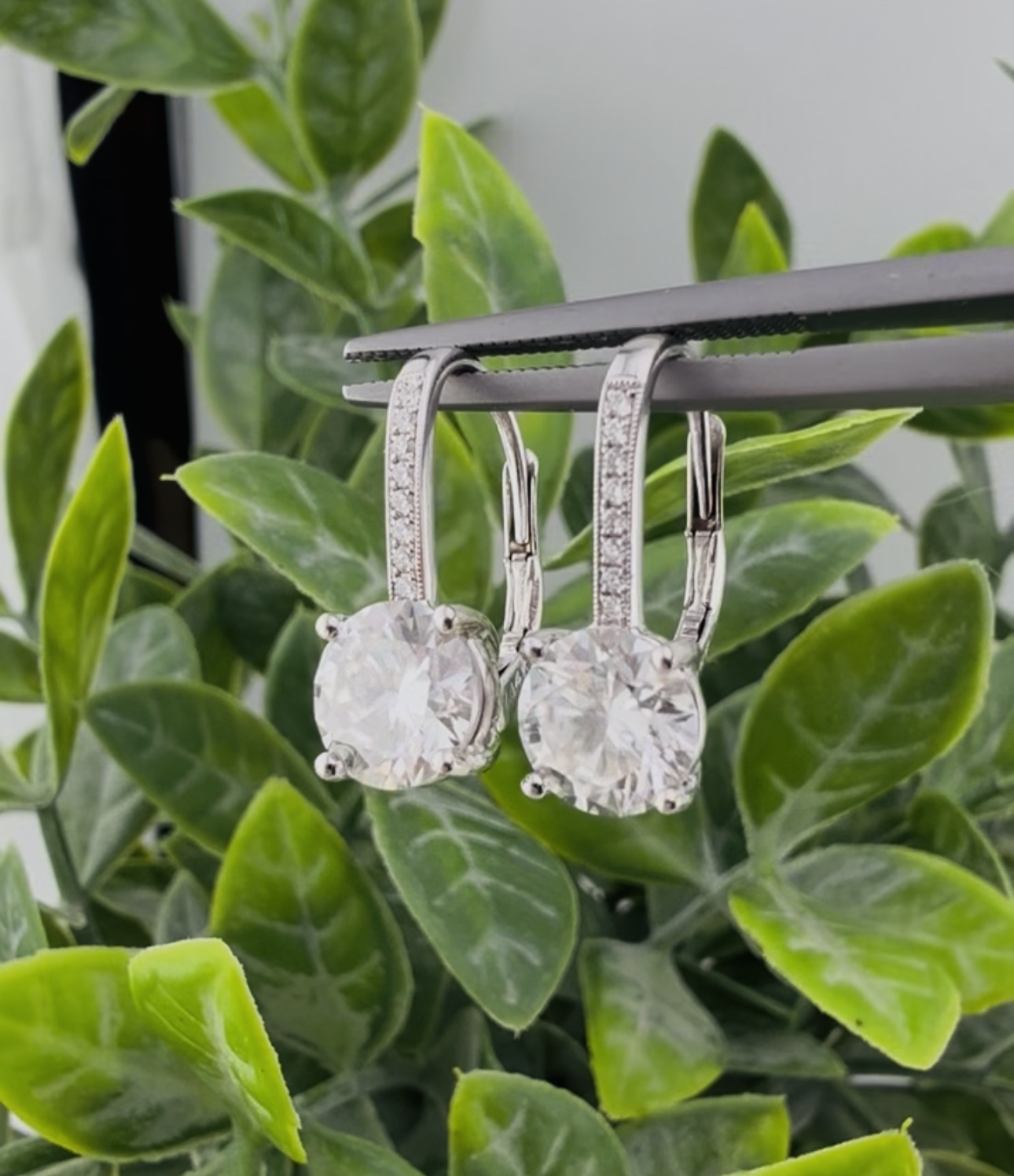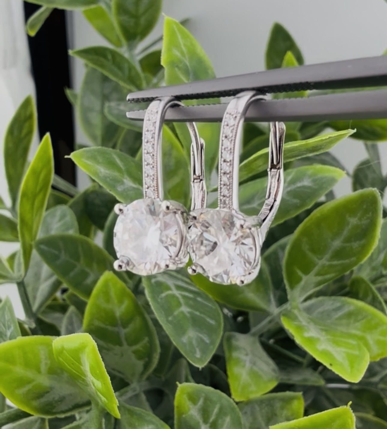 14k White Gold 7.5mm/ea Diamond/Moissanite Drop Earrings w/ Pave set Diamonds. 3.5 grams. These are available in either Moissanite, Lab Grown Diamond or Natural Diamonds for the main stones, and the price ranges wide... $1300 - $30,000