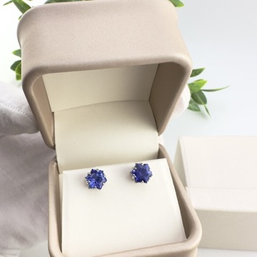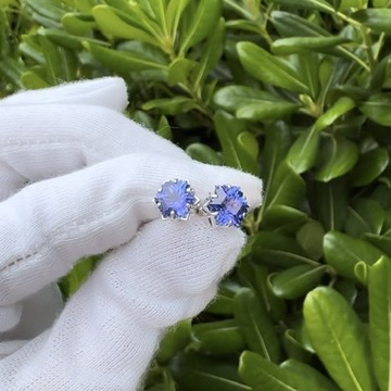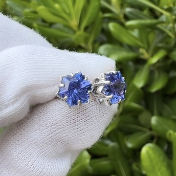 14k White Gold Snowflake Cut Tanzanite Stud Earrings, 8mm Diameter Stones (2.5 g together)