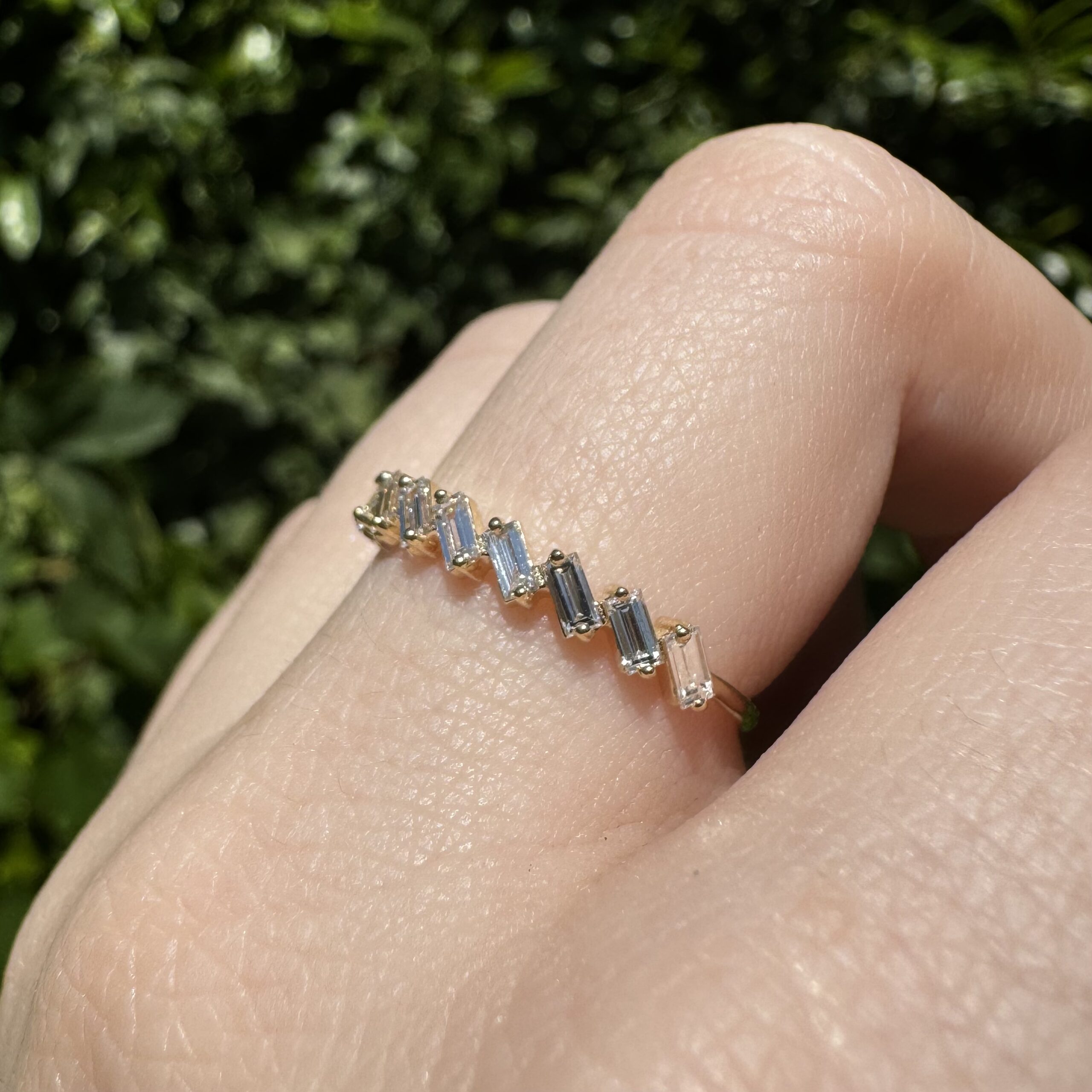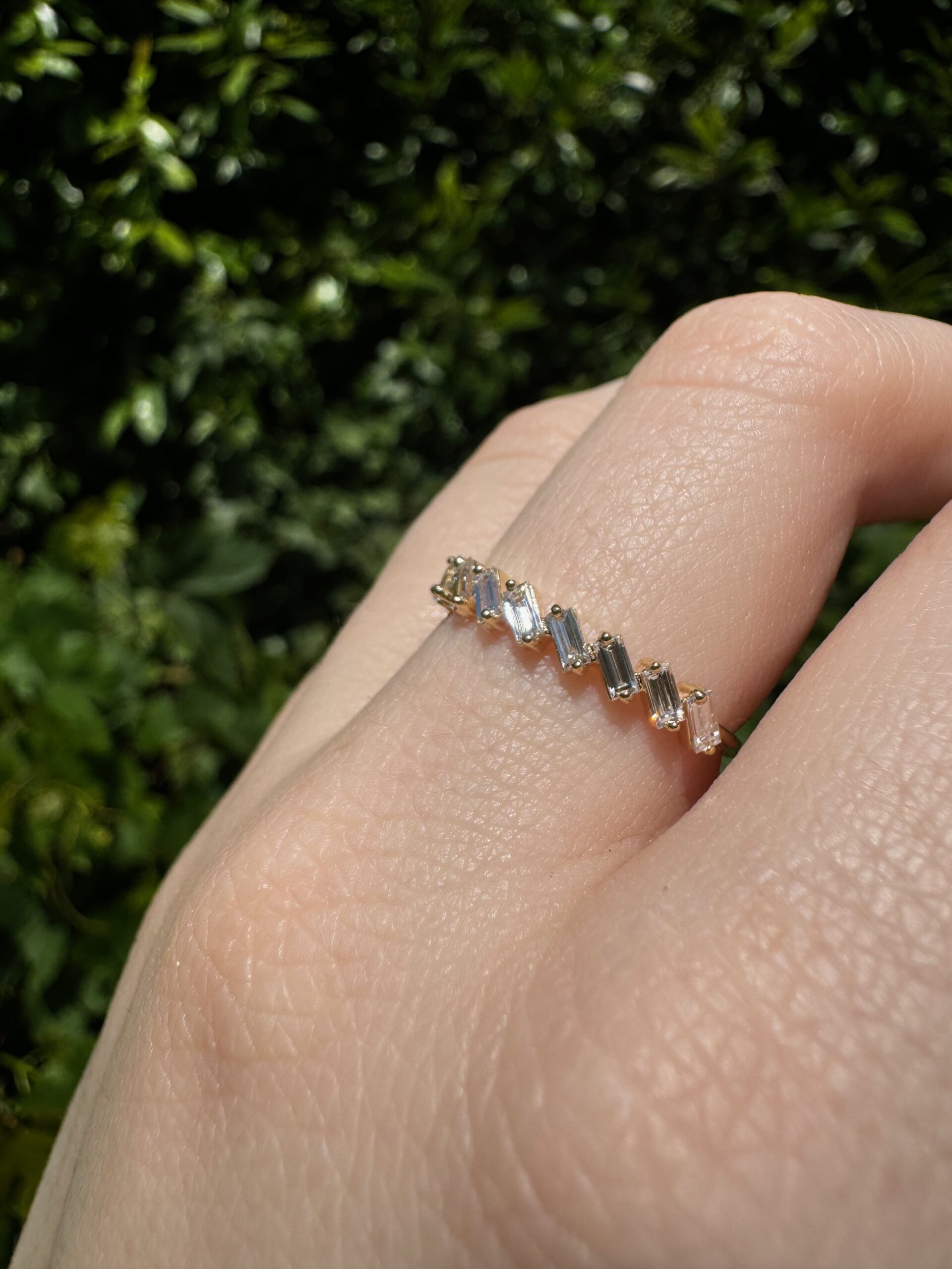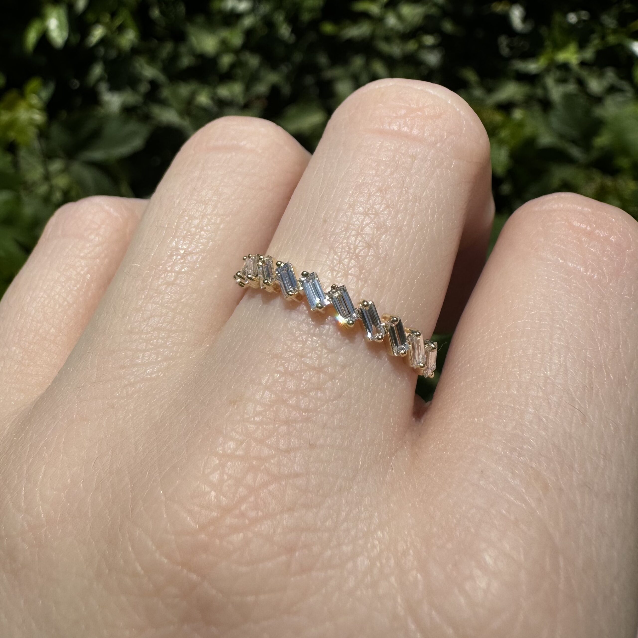 14k Yellow Gold Diamond Band Anniversary, Wedding, or Birthstone, Child Birth Ring. 0.50cttw Baguette Cut Lab Diamond Ring. Weighs 1 gram. Ring Size 7 1/4. Can be sized up or down 2-3 sizes. Brand New, Never Worn. Save me from Melting Pot!