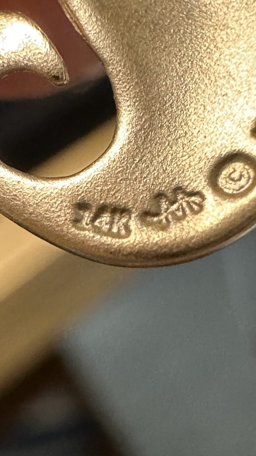 14K Yellow Gold Diamond Whale Pendant. 3/4″ x 3/4″ half a point of nice white natural diamond in carat weight with14K Yellow Gold 18″ Flat Twisted Chain Necklace with Spring ring clasp.