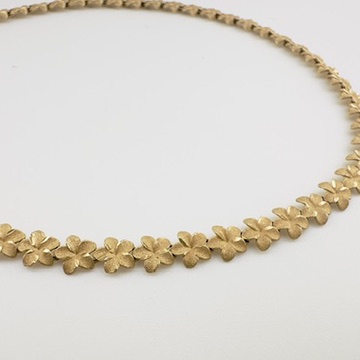 14K Yellow Gold Flower Anklet. 9.5" long. 5mm wide. 4.31 grams. Pre Loved in excellent condition. Spring ring clasp.