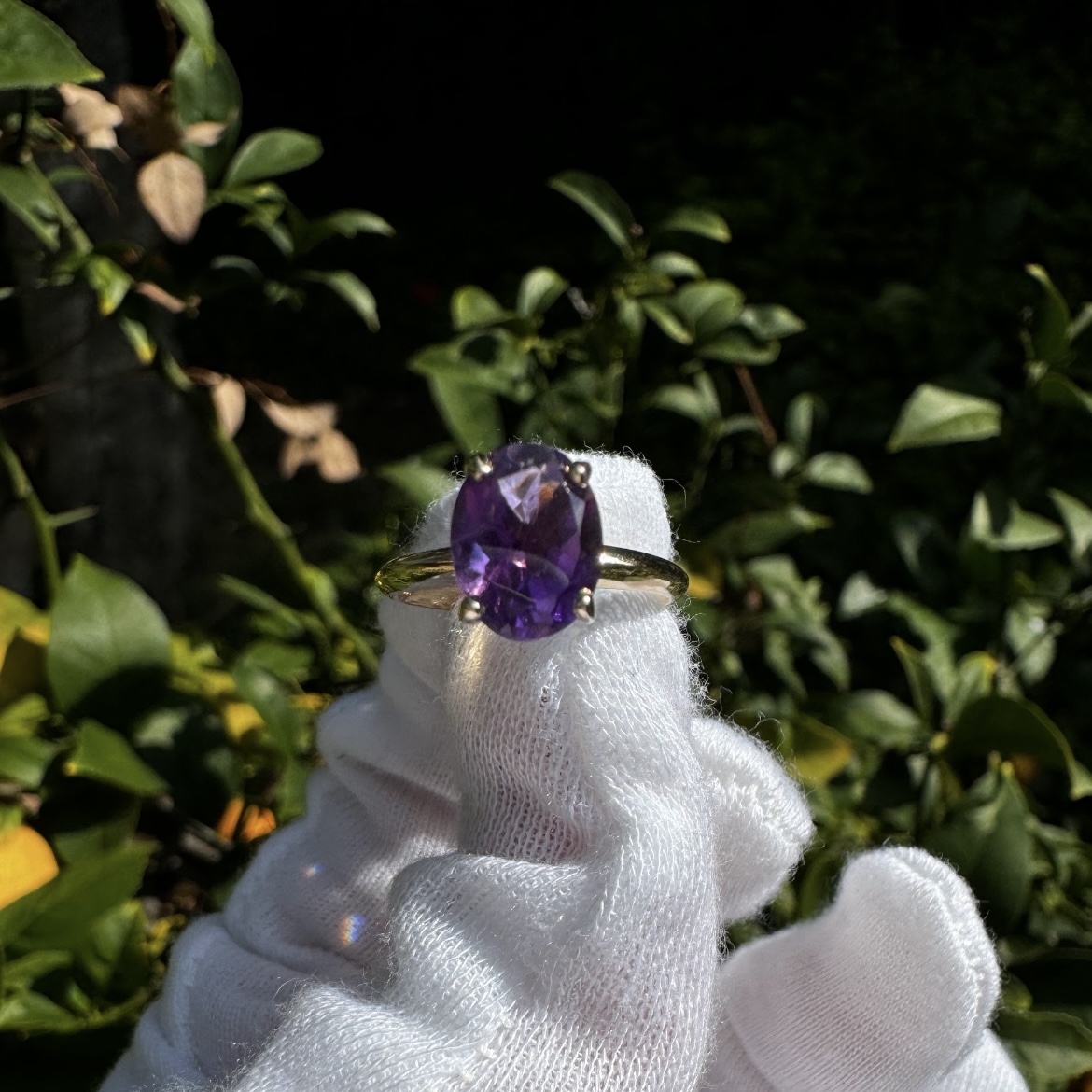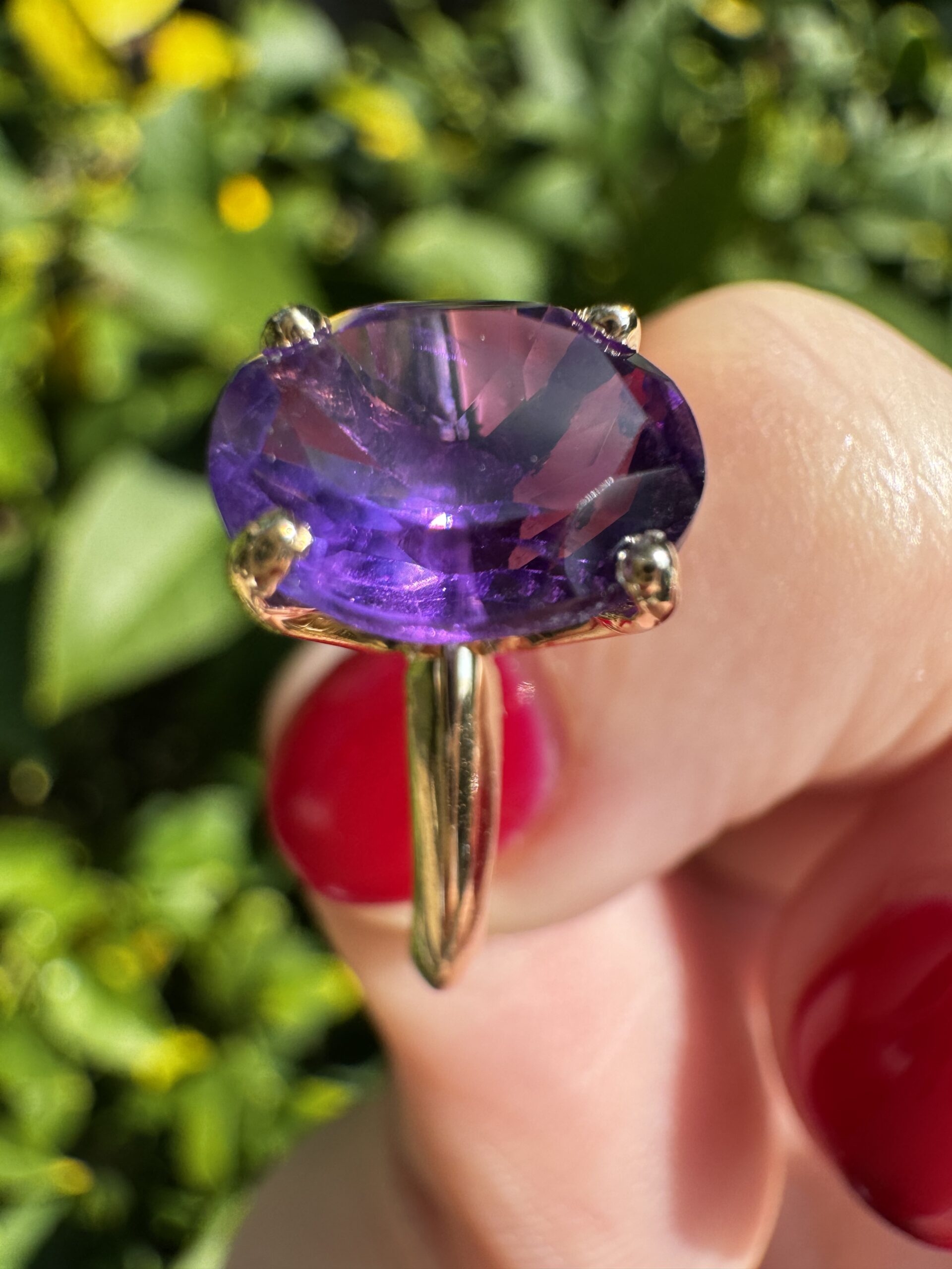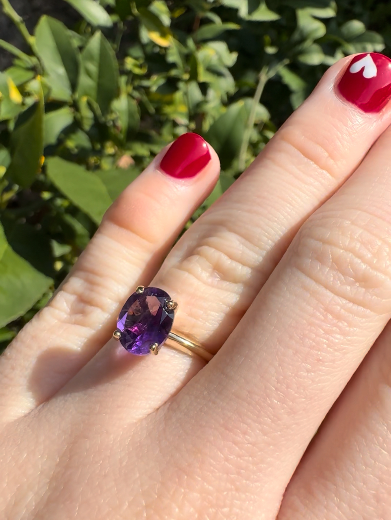 14k Yellow Gold Ring w/ 9x7mm Oval Cut Amethyst. Size 4 1/2. 2.2 grams.