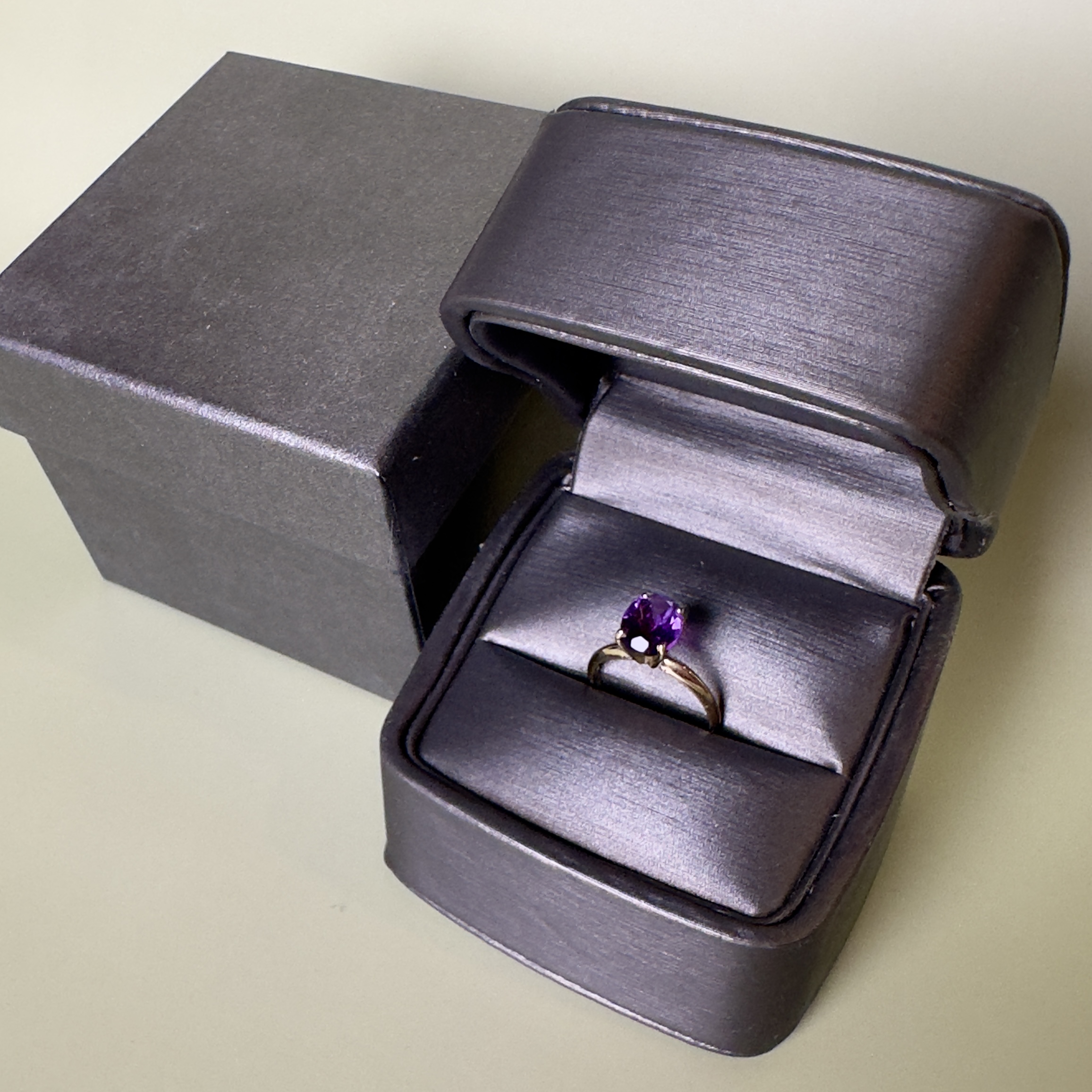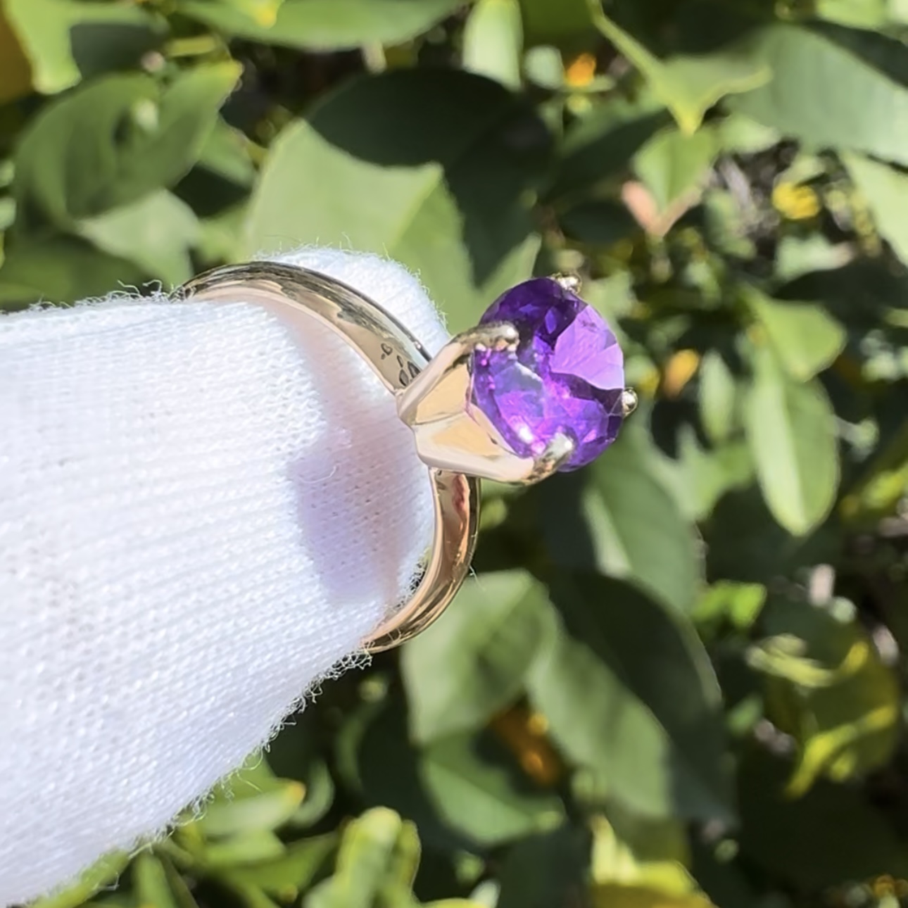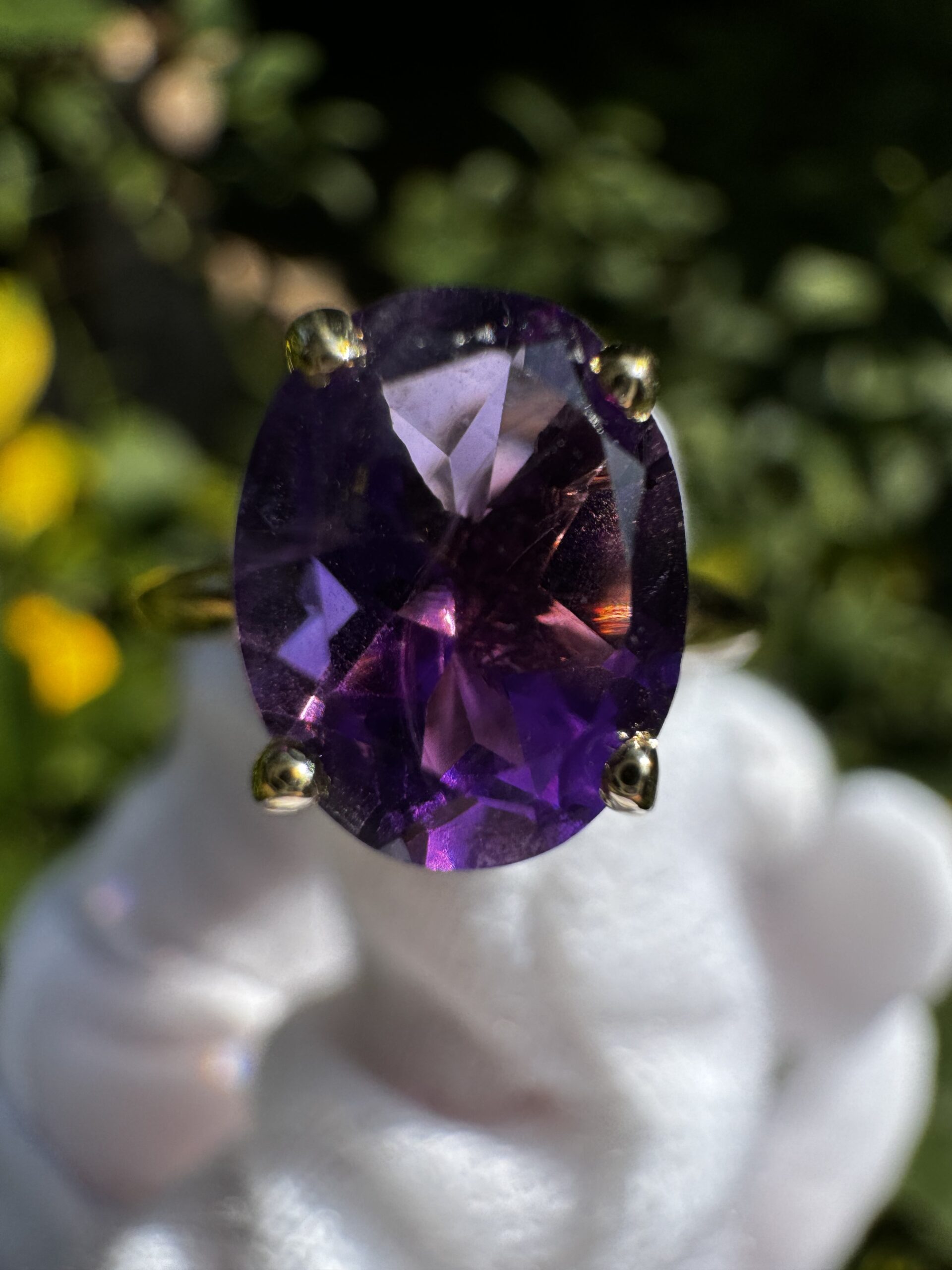 14k Yellow Gold Ring w/ 9x7mm Oval Cut Amethyst. Size 4 1/2. 2.2 grams.