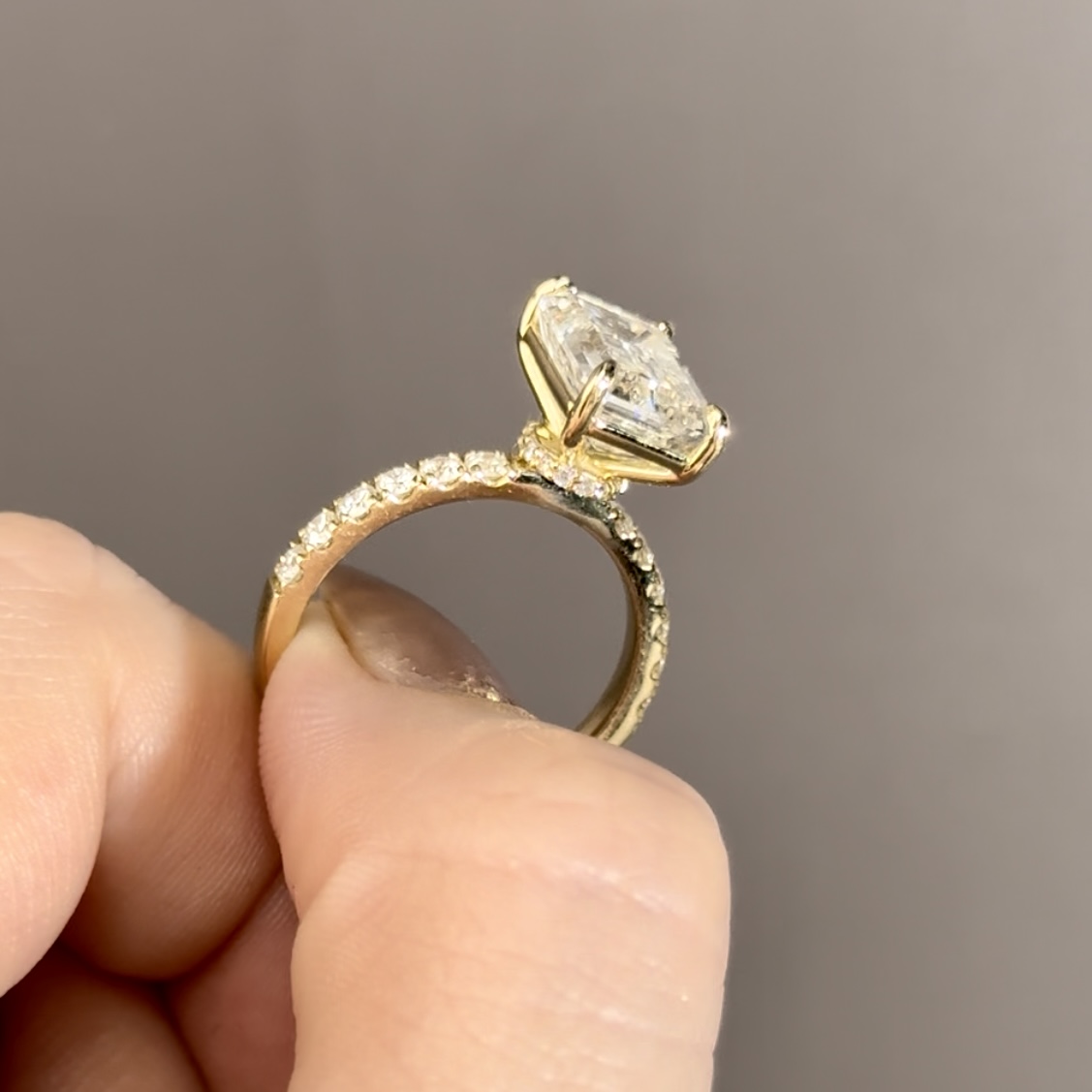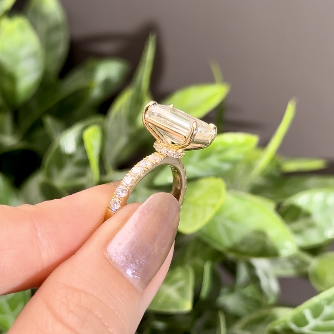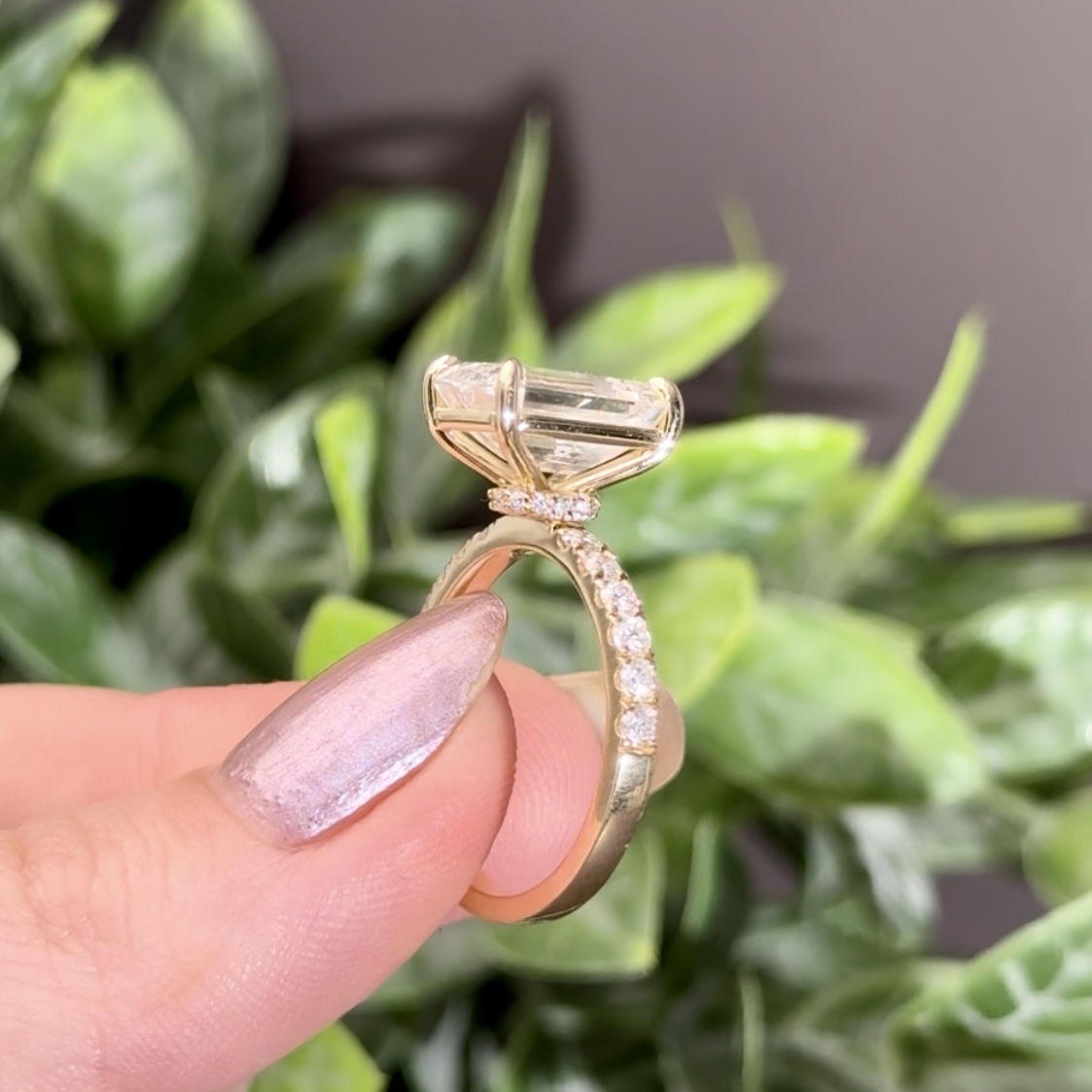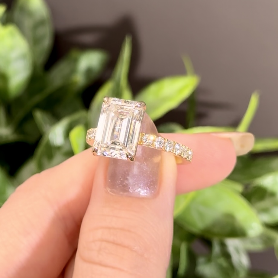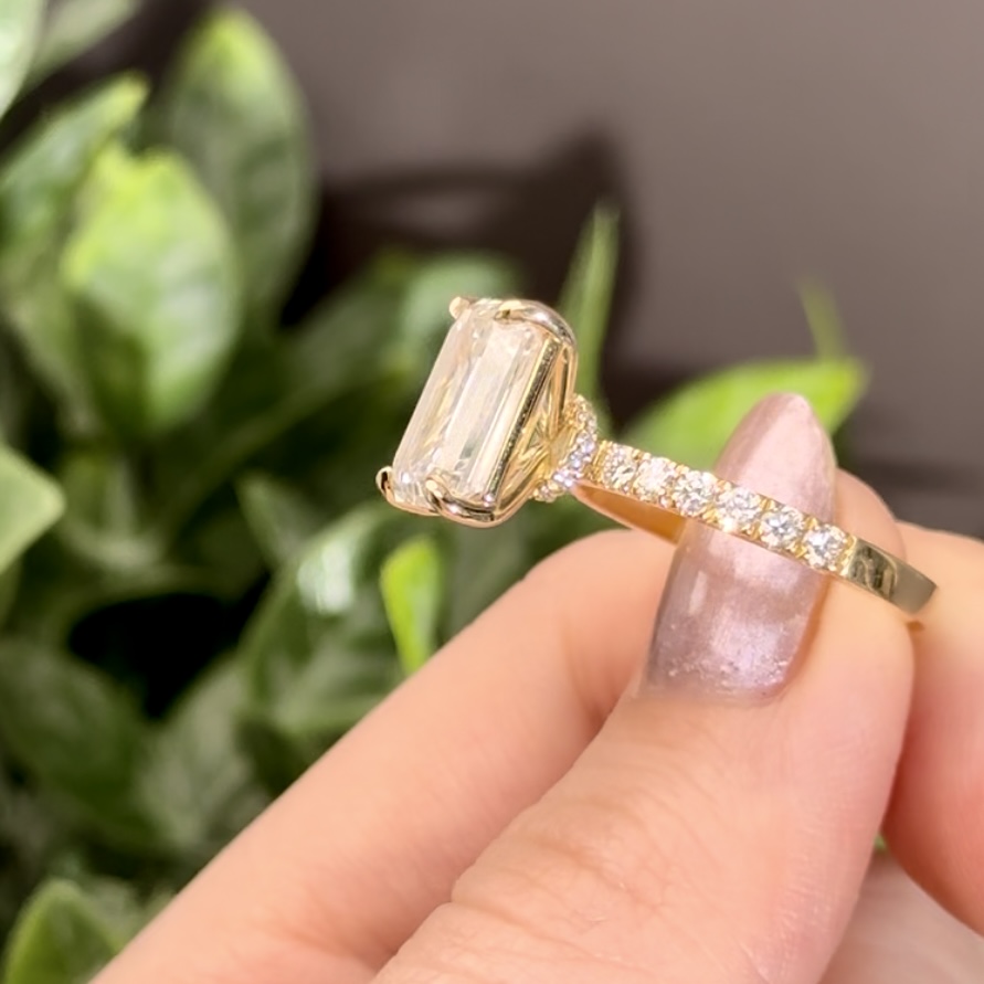 Emerald Cut Hidden Halo Accent
