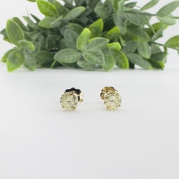 Natural Round Diamond Stud Earrings set in 14K Yellow Gold. Diamonds appear to be L-N color and Si3 Clarity. 4.6mm diameter. Diamonds are about .42 ct. each so almost a half carat per side. These are great daily wear earrings or even for a 2nd or 3rd piercing. I love the faint yellow color of the diamonds that accent the yellow gold of the settings. 0.5 grams.