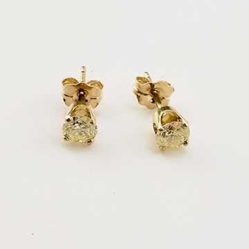 Round Diamond Studs Earrings set in 14K Yellow Gold. Approx .85 ct. Total Weight.