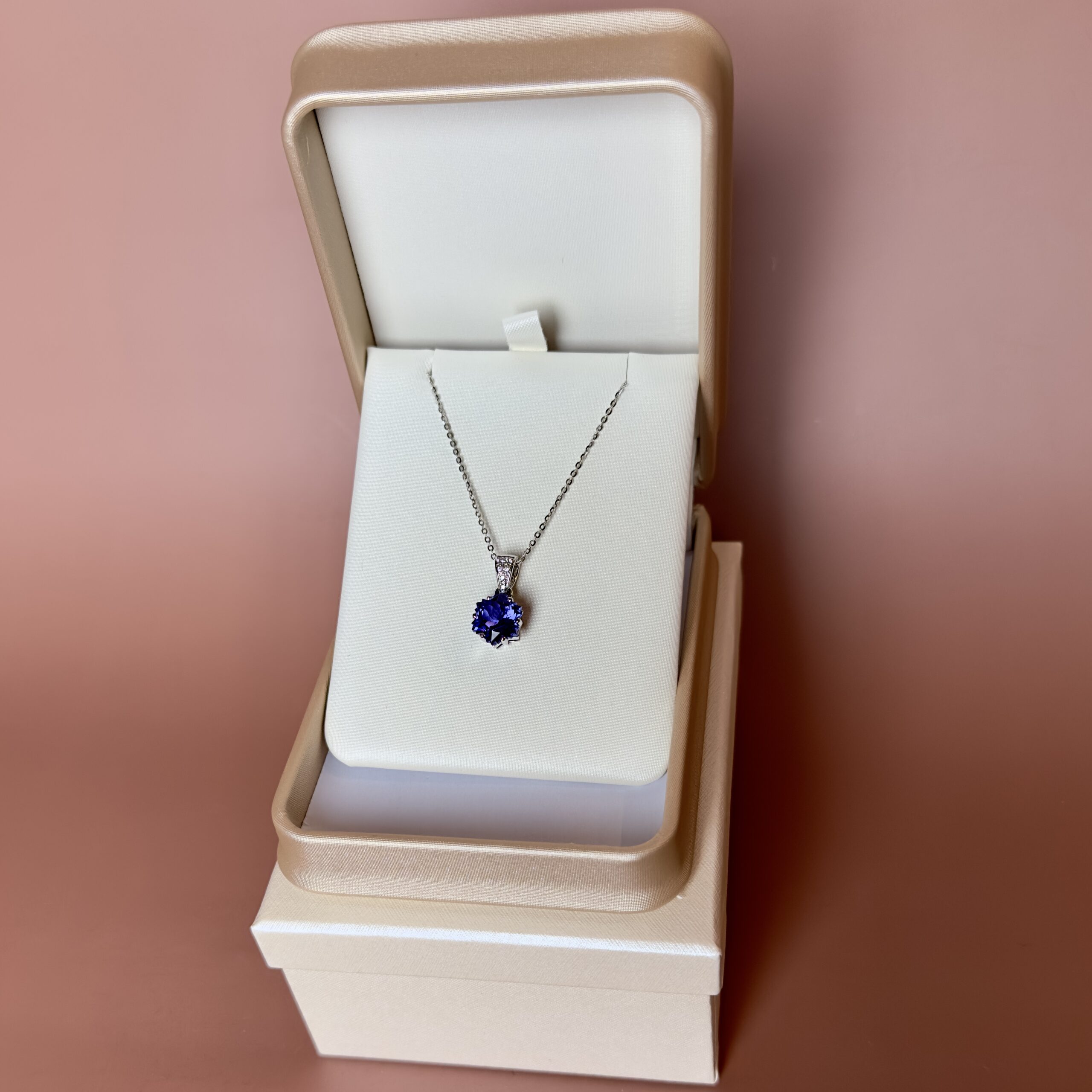 Snowflake Cut Tanzanite and Natural Diamond Pendant Necklace with 1.2mm, 18" Cable Chain with lobster clasp (3.9 g).